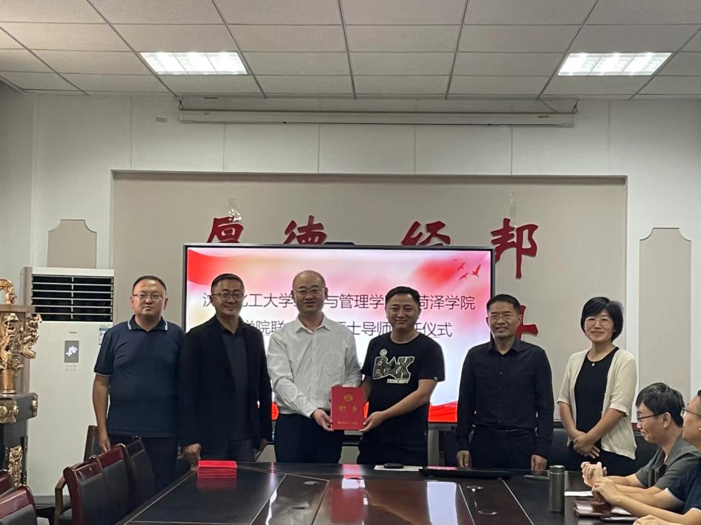 9月26日交流座谈会在菏泽学院1号教学楼119会议室举行。菏泽学院商学院党委书记、党委副书记朱贺、副院长洪梅香和专业主任、学科带头人、学工队伍等参加了座谈交流。座谈会由尹鹏主持。会上,尹鹏代表商学院对永利官网领导老师的到来表示热烈欢迎,并从组织架构、人才培养、科学研究等方面介绍了商学院的基本情况。李丙文书记从永利官网发展历史、学科背景、办学理念、发展现状等方面作了简要介绍。随后,双方围绕研究生联合培养运行机制、学生活动开展情况及科研合作等方面展开了探讨。最后,进行硕士生导师聘任仪式。座谈会后,商学院师生于学校图书馆报告厅聆听了刘铁民副院长的沈阳化工大学永利集团248cc登录研究生培养专场报告并进行了学生考研动员。