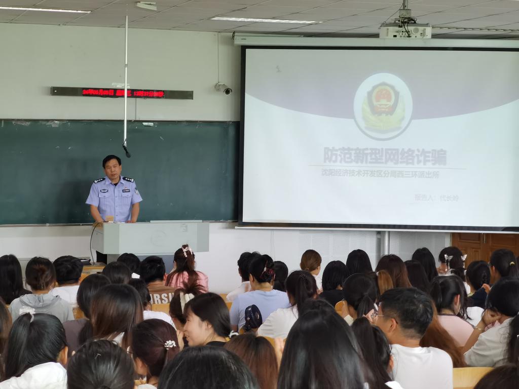 在讲座中,代长岭副所长向同学们介绍了西三环派出所,带领同学们了解了新型网络诈骗的基本情况,通报了近两年辖区发生的警情,详细讲解虚假服务诈骗、冒充客服诈骗、游戏诈骗等六种大学生常遇到的诈骗类型,提醒同学们遇到电信网络诈骗,做到“三不一要”,即不轻信、不透露、不转账、要及时报案。