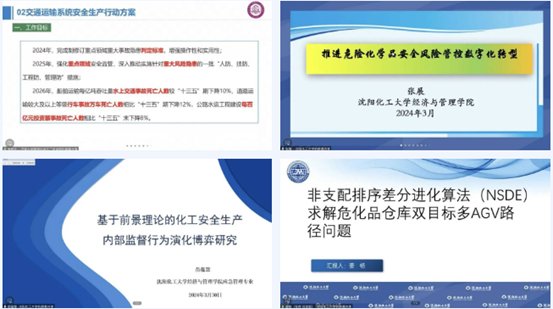 永利集团248cc登录副院长刘铁民主持会议第二单元。永利集团248cc登录张展老师以《推进危险化学品安全风险管控数字化转型》为题,介绍了化工和危险化学品安全生产治本攻坚三年行动方案(2024-2026年),对推进危险化学品安全风险管控数字化转型工程展开剖析,梳理了近三年政府出台的相关指导意见和实施方案,最后提及新质生产力与石化行业数字化转型、设备更新升级。永利集团248cc登录苗蕴慧老师以《基于前景理论的化工安全生产内部监管行为演化博弈研究》为题,引入2023年国内十大化工事故,采用演化博弈的方法并结合前景理论,构建管理者和员工的演化博弈模型,借用MATLAB将主体行为选择的过程可视化,通过仿真模拟解释关键因素对主体行为选择的影响,并运用模型来研究提高化工企业内部监管的举措。永利集团248cc登录研究生姜杨以《非支配排序差分进化算法(NSDE)求解危化品仓库双目标多AGV路径问题》为题,对AGV工作流程说明、多目标优化问题、混合整数规划模型、非支配排序差分进化算法、编码解码进行讲解,引入NSCA-II的快速非支配排序方法和经营选择策略,最后将NSDE与GUROBI、MOTS进行比较以证明算法的有效性。