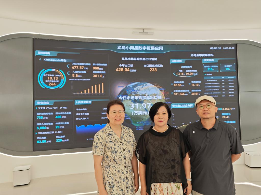 调研组通过实地走访与深入交流,了解到义乌面对贸易战的严峻变局,正以数字贸易为核心,一体推进市场、贸易、履约等数字化转型。通过整合电商平台、贸易主体、第三方服务商等资源,结合新一代人工智能技术,推动Chinagoods平台成为开放的第四方服务平台,系统构建全链路、跨平台、多业态的数字生态赋能体系。招引设计机构、电商平台、AI企业等各类数贸新主体,集成仓储物流、金融支付、报关结汇等数贸全链条履约服务,加速由“展示交易”向“数贸交易”转变,形成全球数贸中心发展新动能。