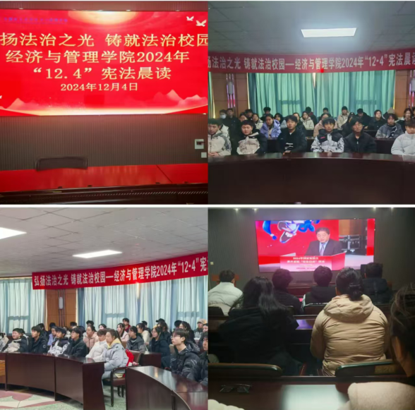 为了引导学生深入学习宪法法治知识、增强宪法法治观念、树立宪法法治意识,提升法治素养,按照教育部印发的《关于开展2024年教育系统“宪法宣传周”系列活动的通知》以及省“宪法宣传周”有关部署要求,12月4日,永利集团248cc登录组织全院师生共同观看了全国教育系统“宪法晨读”直播节目,并同步参与了宪法学习环节。